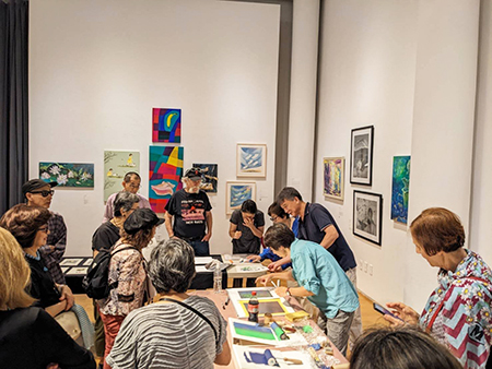 版画作家の永野みきさんが、英語で技法説明などをして会場は盛りあがりました。 (Keico W)