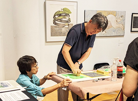現代版画家として活躍している、松村誠一によりリトグラフ版画実演 |